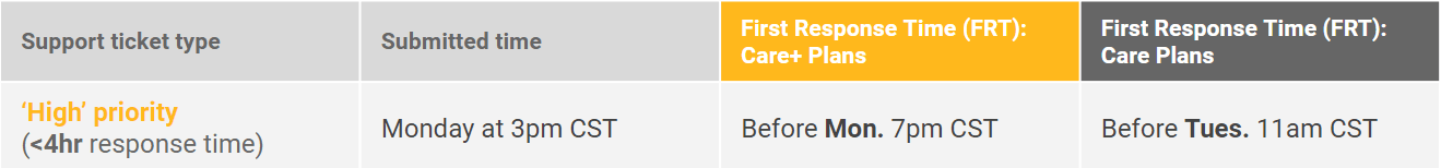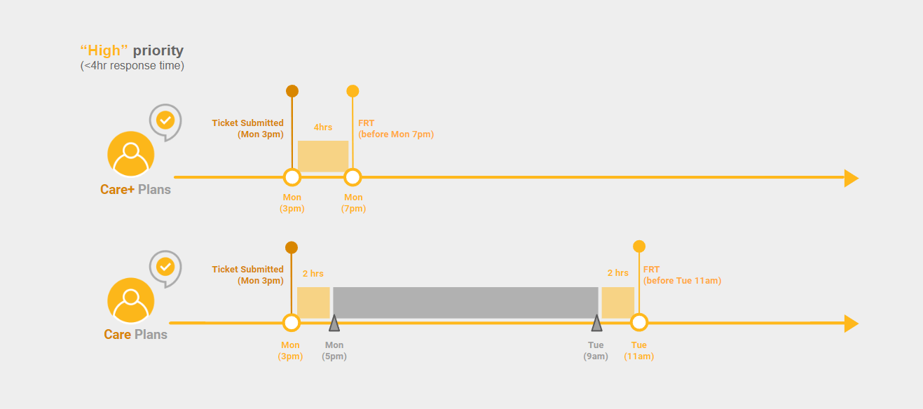 With a Care plan, your certified partner will provide comprehensive technical support. Each partner is equipped with specialized training, years of expertise, and our backing. They are ready to handle anything your deployment may encounter.